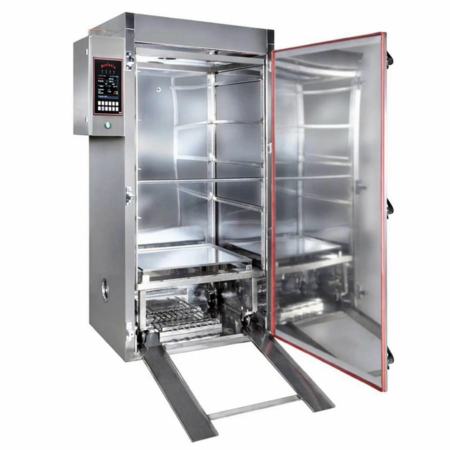 A Beelonia F széria professzionális füstölőberendezései prémium, dupla falú rozsdamentes acél kivitelükkel kiemelkedő hőstabilitást és üzembiztos működést kínálnak. Az F1 – F6-100 modellekig fa gáz vagy elektromos üzemmel egyaránt használhatók, az energiamód pedig a fiókos csererendszernek köszönhetően körülbelül 30 másodperc alatt váltható. A berendezések széles technológiai tartományt fednek le a forró füstöléstől a lassú barbecue eljárásokon át egészen a hidegfüstölésig, állandó és megbízható eredménnyel.