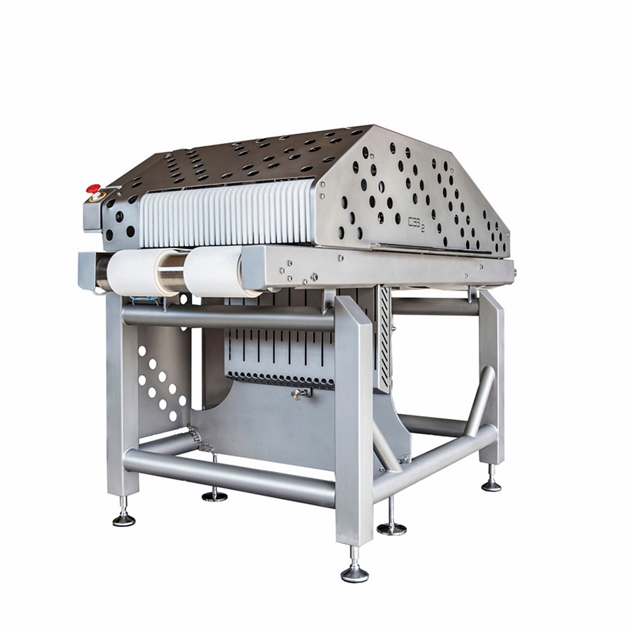 A Food Technology Thielemann CBS2 egy kétpályás, nagy teljesítményű vízszintes szeletelő berendezés, amelyet csont nélküli baromfi filék precíz és egyenletes szeletelésére fejlesztettek ki. A gép oszcilláló késrendszere biztosítja a kiváló vágási minőséget, míg a lebegő nyomószalagok kíméletes termékszállítást tesznek lehetővé, minimalizálva a deformációt és a veszteséget. A CBS2 különösen alkalmas nagy kapacitású üzemek számára, ahol fontos a magas teljesítmény és az állandó minőség.