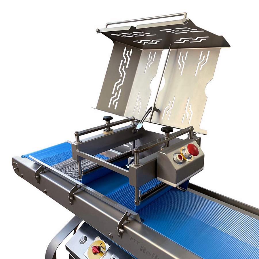 A Food Technology Thielemann Rollmaster RM2-180 egy két szalagpályás, ipari kivitelű automata feltekerő berendezés, amelyet friss hús szeletek – töltött vagy töltetlen – precíz és egyenletes feltekerésére terveztek. A gép lehetővé teszi különböző termékek, például roládok, cordon bleu vagy bacon-be tekert virsli és egyéb készítmények nagy sebességű, folyamatos előállítását. A rendszer kíméletes termékkezelést biztosít, miközben jelentősen növeli a termelékenységet és egységes végterméket eredményez.