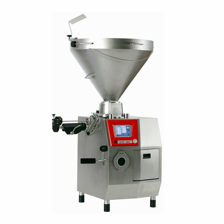 A HTS 150 vákuumos töltő egy sokoldalú, „dinamikus töltőgép”, amelyet közepes és nagyüzemi húsipari felhasználásra terveztek. A gép a precíziós adagolást, a kíméletes termékkezelést és a nagy teljesítményt ötvözi, lehetővé téve a buborékmentes töltést és a pontos súlytartást még nagy sebesség mellett is.