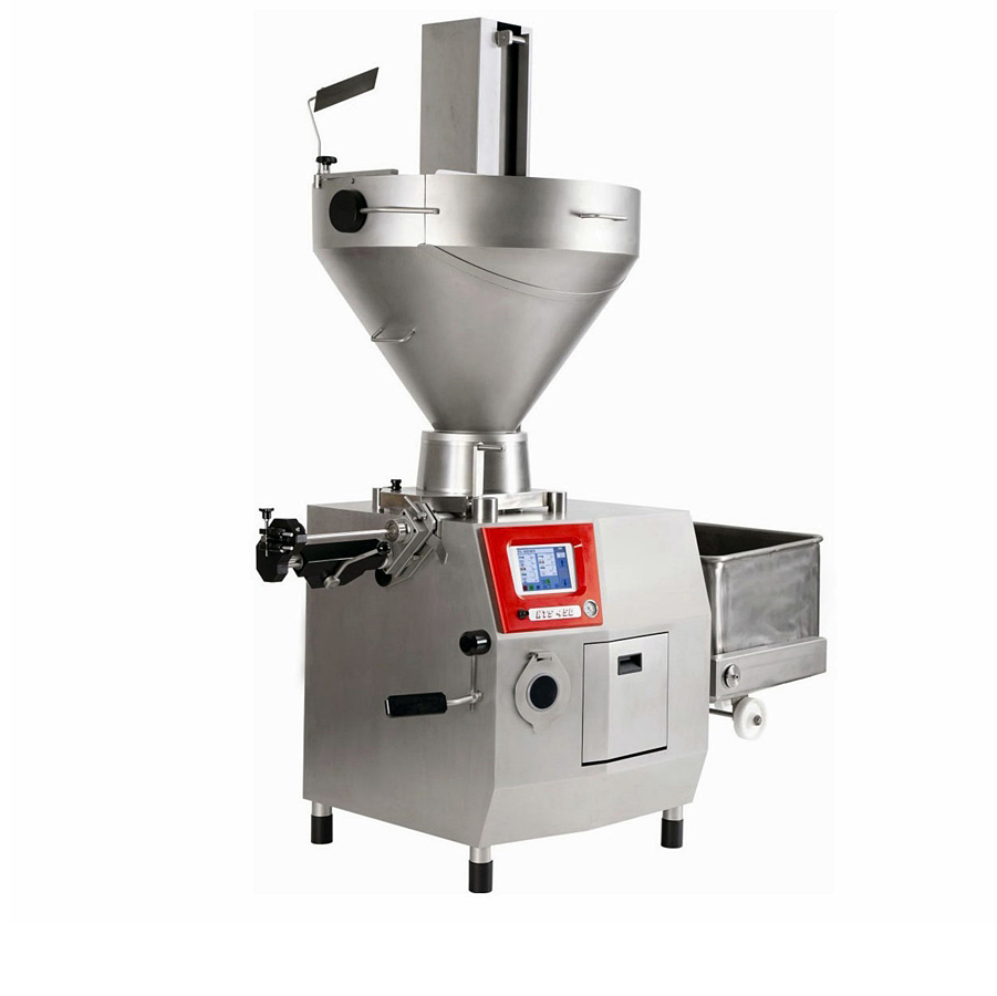 A HTS 450 vákuumtöltőgép egy nagy teljesítményű, ipari kategóriájú töltőberendezés, amelyet kifejezetten nagyüzemi húsipari termeléshez fejlesztettek ki. A nagy méretű rotorcellás adagolórendszer és a vákuumos technológia biztosítja a levegőmentes, homogén termékszerkezetet még nagy sebesség mellett is. A berendezés kiemelkedő kapacitásával és precíz adagolásával ideális választás folyamatos, több műszakos gyártásra, ahol a teljesítmény és a megbízhatóság elsődleges szempont.