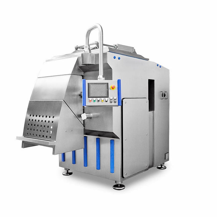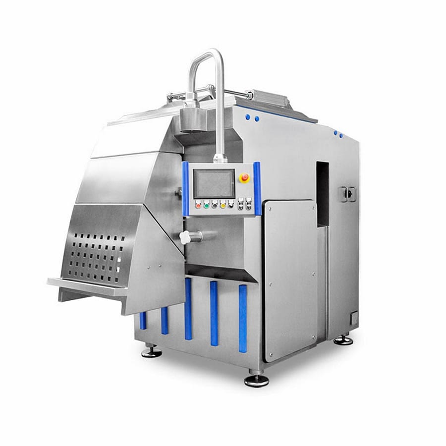 A PSS SMV széria nagy teljesítményű, két-szintes vákuumos ipari keverőberendezés, amelyet húsipari és élelmiszeripari masszák intenzív, ugyanakkor kíméletes homogenizálására terveztek. A vákuumos technológia biztosítja a levegő kizárását a keverési folyamat során, ezáltal javítja a termék kötőképességét, színstabilitását és szeletelhetőségét, miközben csökkenti az oxidációt és növeli az eltarthatóságot. A robusztus rozsdamentes acél konstrukció és az ipari hajtásrendszer nagy kapacitású, megbízható üzemelést tesz lehetővé közepes és nagyüzemi környezetben